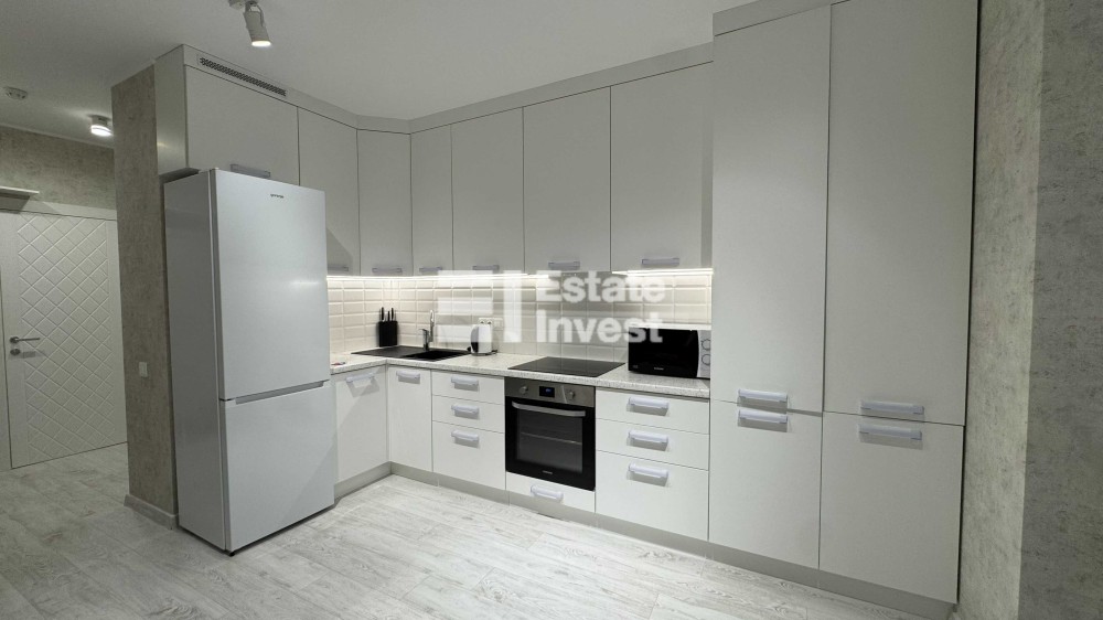 Квартира виконана у світлих сучасних тонах та має стильний дизайнерський ремонт. Кухню та спальну зону об’єднано для створення максимально функціонального простору. Встановлено нові меблі та сучасну техніку, використано якісні матеріали оздоблення — ідеальний варіант “заходь і живи”, без додаткових вкладень або під здачу в оренду. В будинку є генератори на ліфти та воду.
