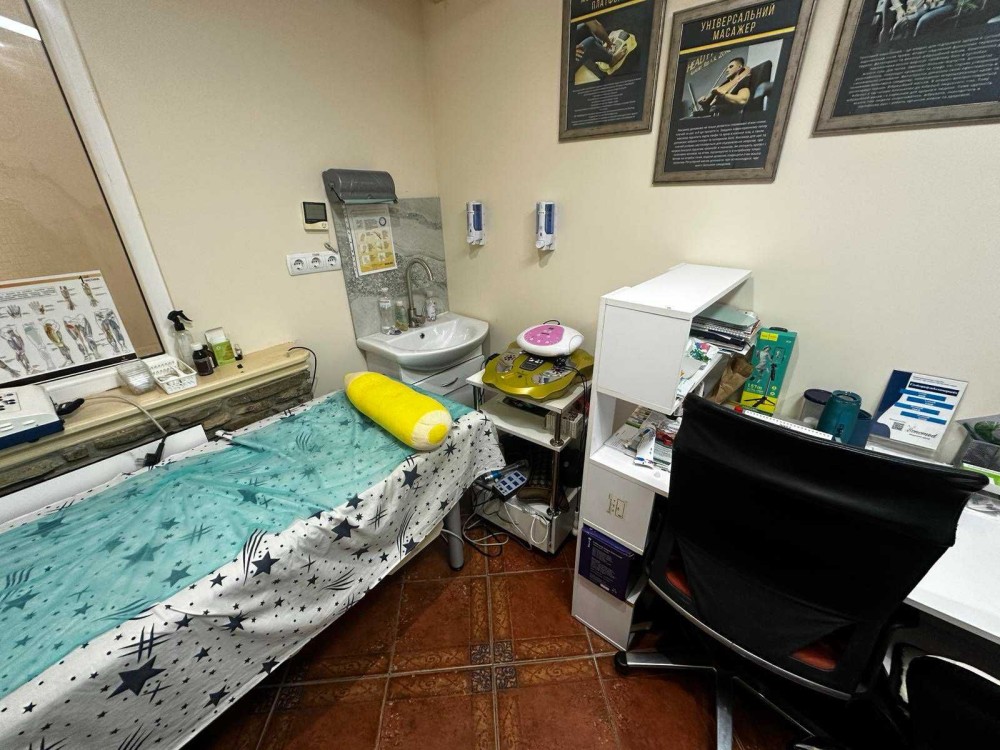 На 1-му поверсі рецепція, кабінет апаратних масажів, СПА капсула для реабілітації, кабінет пресотерапії та аналізів, санвузол та кімната для душу, приміщення для персоналу з кухнею (кухонна мебель є), каво машина, пральна машина, на 2-му поверсі три кабінети: косметологічний - хірургічний, оснащений косметологічним комбайном, апарат фототерапії, кабінет реабілітації та фізіотерапії, оснащений терапевтичний лазар, апарат магнітотерапії, сухе витягування хребта апаратним Нуга Бест, апарат біоенергетичного масажу та міостимуляції, кабінет УЗД та гінекології, оснащений апаратом Samsung з трьома датчиками.