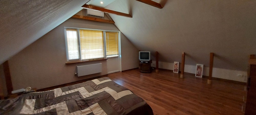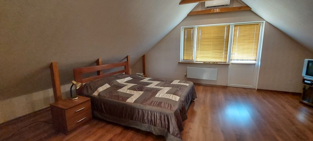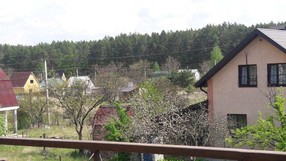 БЕЗ%, будинок 190м2, Віта Поштова, СТ «Хуторець», навколо ліс, 9 км Київ та м.Теремки, Одеська траса Загальна площа будинку - 190м2. Площа земельної ділянки 10.38 соток. Будинок знаходиться в затишному та мальовничому місці, між Вітою Поштовою та Тарасівкою, оточений дорослим хвойним та листвяним лісом, з власним виходом на озерце. Побудований на пагорбі, дає можливість насолоджуватись неперевершеним видом на ліс та озеро, крізь великі панорамні вікна будинку 24/7. Раціональне та комфортне планування, великі, світлі та просторі кімнати з панорамними вікнами. 1й поверх: столова – вітальня, кухня, гердероб, санвузол, гараж, котельня; 2й поверх: три окремі спальні кімнати, санвузол. Об’єкт для поціновувачів заміської тиші та ранкових піщих прогулянок!