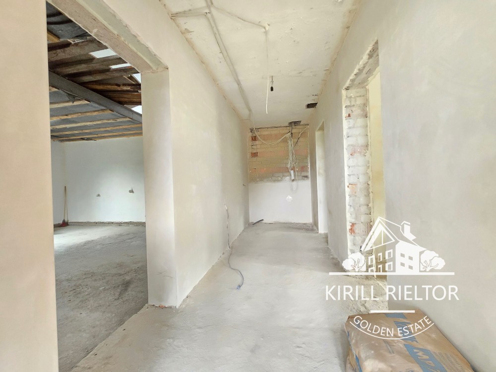 Внутри сделан монтаж электропроводки и машинная гипсовая штукатурка