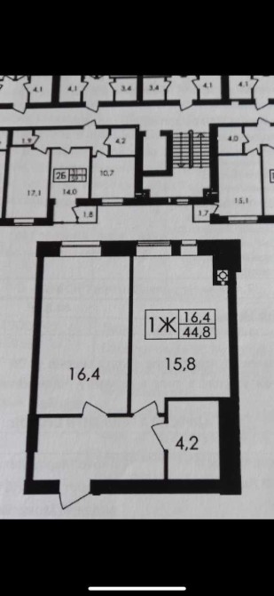 Третя секція, третій поверх, вікна виходять в двір. Оформлення на власника по переуступці.
