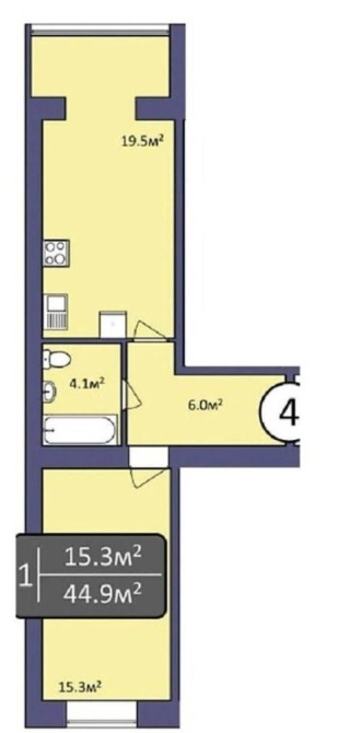 • Загальна площа 46 м2