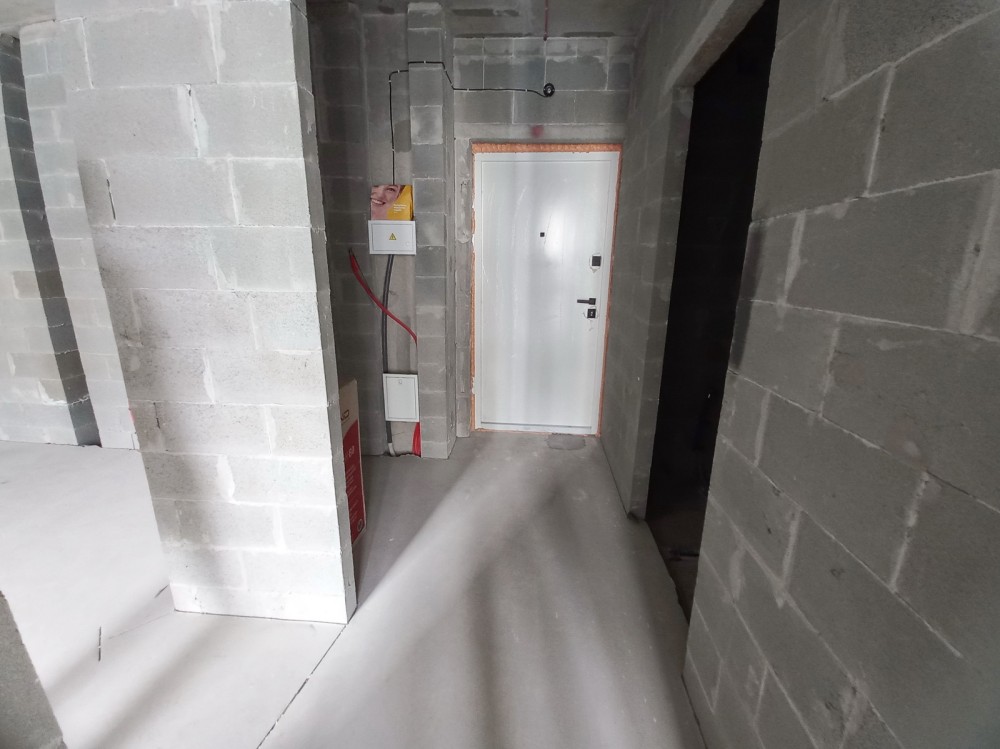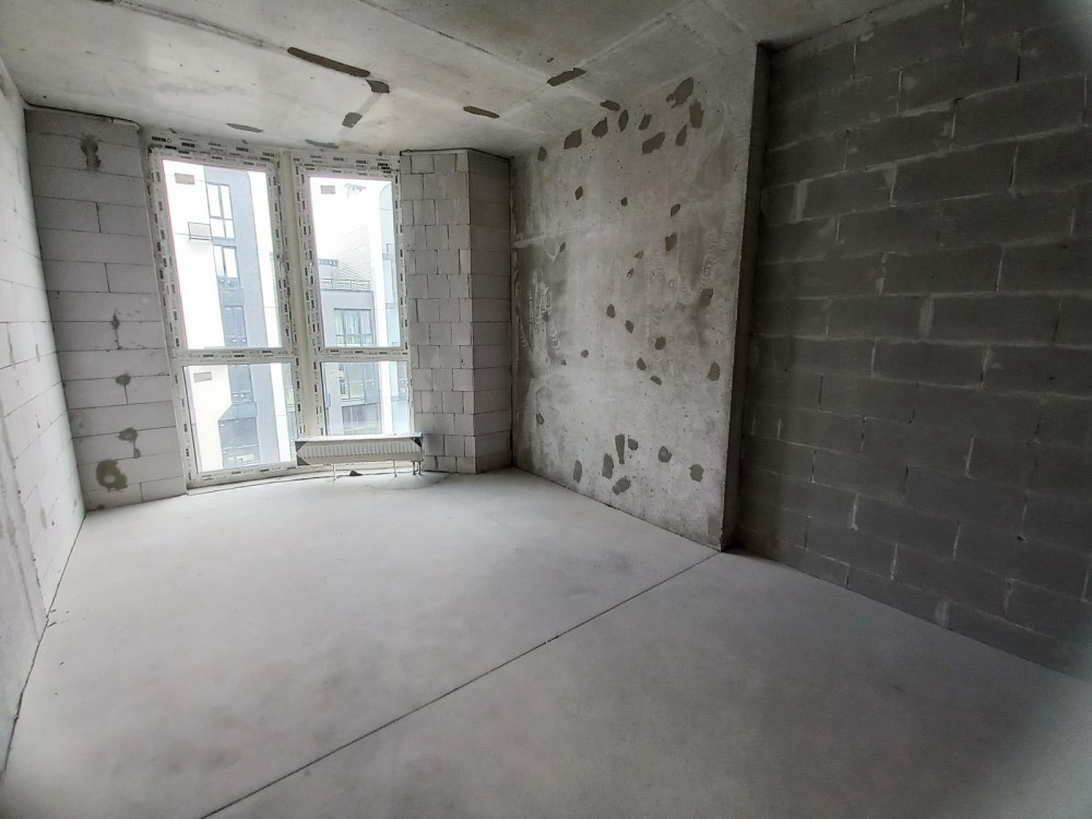 Затишна квартира з продуманим плануванням знаходиться в готовому будинку, 7/16 пов. Має простору кухню-вітальню, з якої є вихід на балкон. Прямо від передпокою розміщена спальня, ліворуч - санвузол. Загальна лоща квартири – 44,9 кв.м., кухні-вітальні – 20,7 кв.м., спальні − 14,4 кв.м. Стан квартири - від будівельників, є стяжка підлоги, встановлені металопластикові вікна, бронедвері. Бойлер в комплекті.