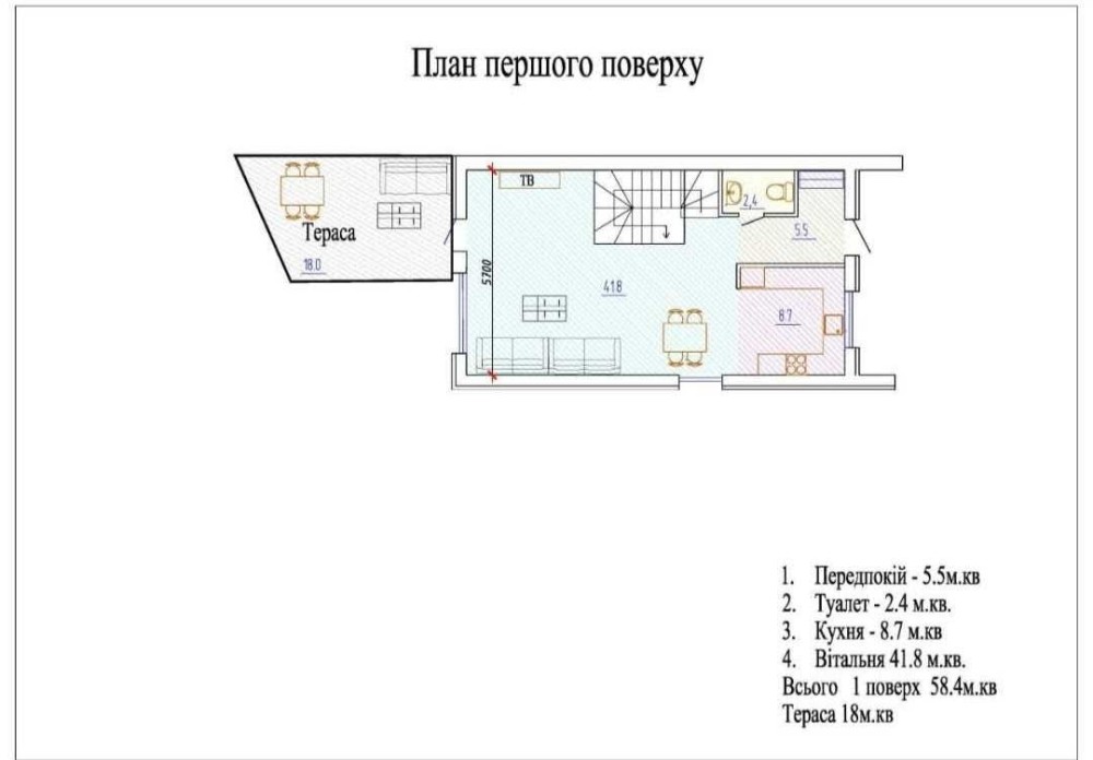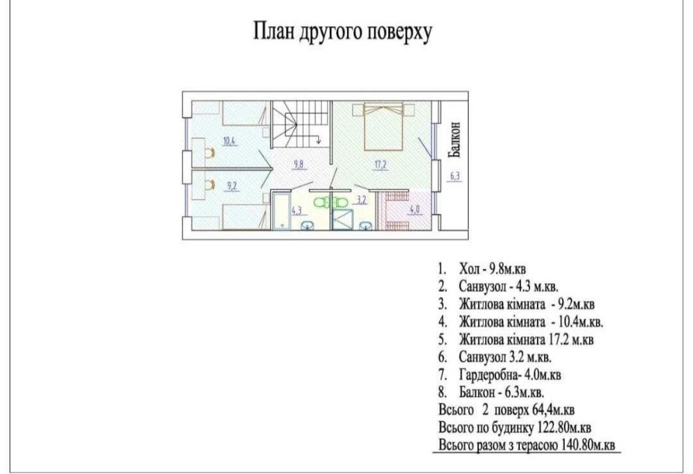 - загальна площа будинку 123 м2, з терасою 140 м.кв.
