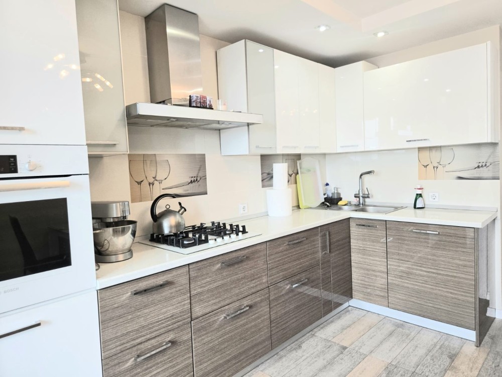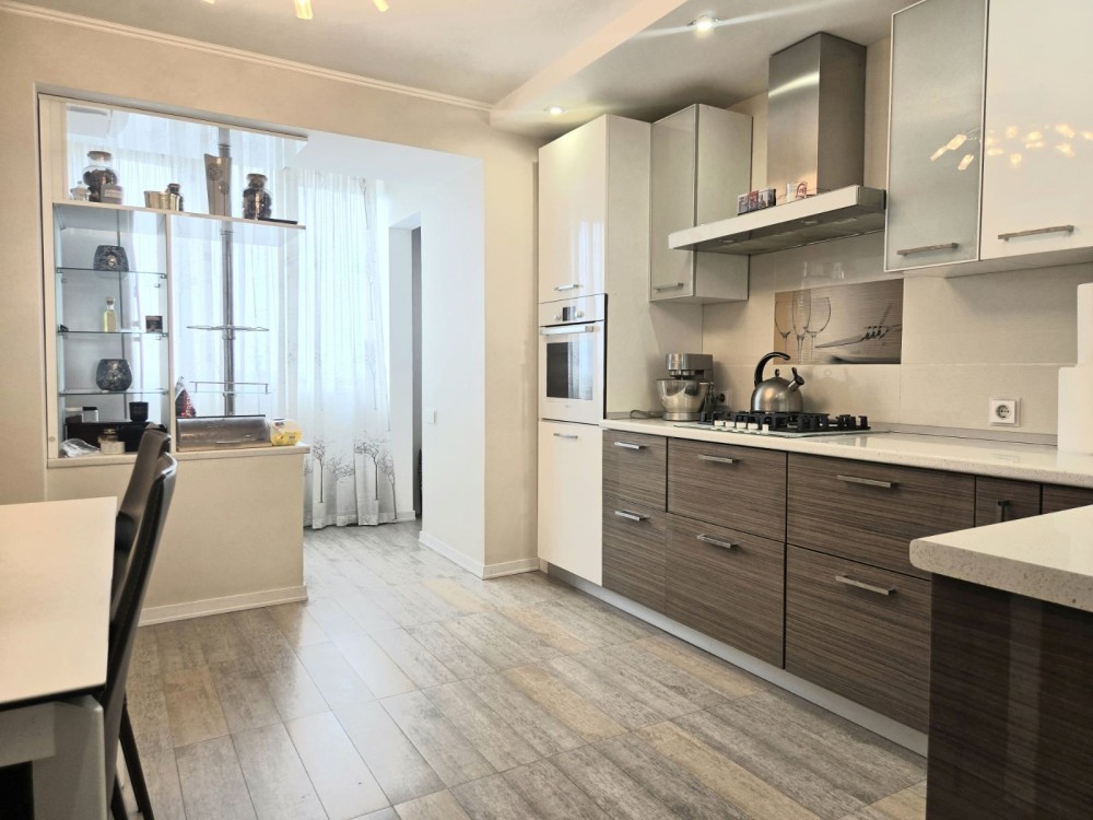 У квартирі зроблений сучасний ремонт, дорогі меблі та техніка, усе в світлих тонах, зроблене для себе.