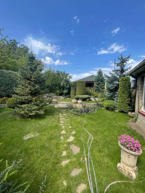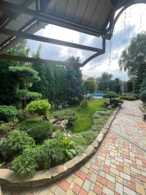 Територія облагороджена та доглянута: у дворі є гараж на дві автівки, зона відпочинку з басейном, який вражає підсвічуванням та чарівним водограєм. Різноманіття рослин, квітів, види ялинок і піхт створюють неповторну атмосферу затишку і природи. Велика тераса — ідеальне місце для відпочинку і приємних зустрічей. Для любителів барбекю облаштовано професійну зону, де можна готувати смачні страви просто на свіжому повітрі. Будинок обладнано системою охорони та відеонаглядом, що забезпечує безпеку усієї території. Автоматичний полив підтримує сад у бездоганному стані, а прибудова для зберігання садового інвентарю додає зручності. На території також є великий літній кухонний блок з усіма зручностями, вбудованими італійськими меблями, а також санвузол. Планування будинку грамотно продумане: просторий хол поєднаний із кухнею, кімнатою та затишним камінним залом. На першому поверсі — велика вбиральня, на другому — три світлі і просторі спальні та санвузол.