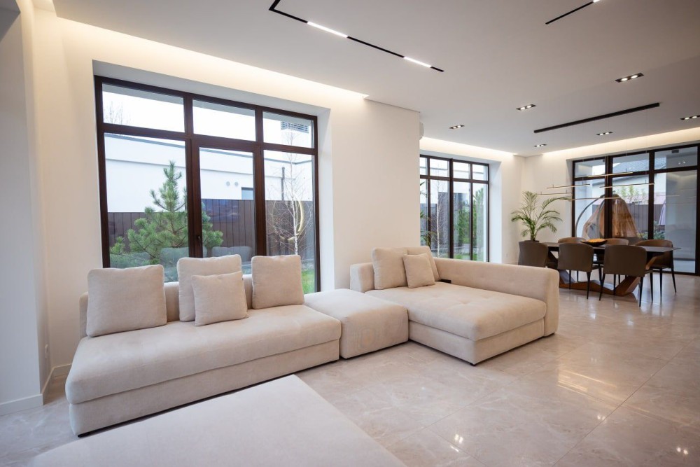 Панорамні вікна відкривають вид на паркову зону — світло, простір і абсолютний спокій.