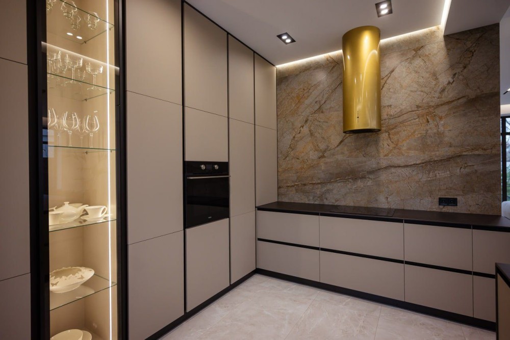 Велика кухня-студія 94 м² з виходом на терасу — ідеальне місце для ранкової кави чи вечірніх зустрічей.