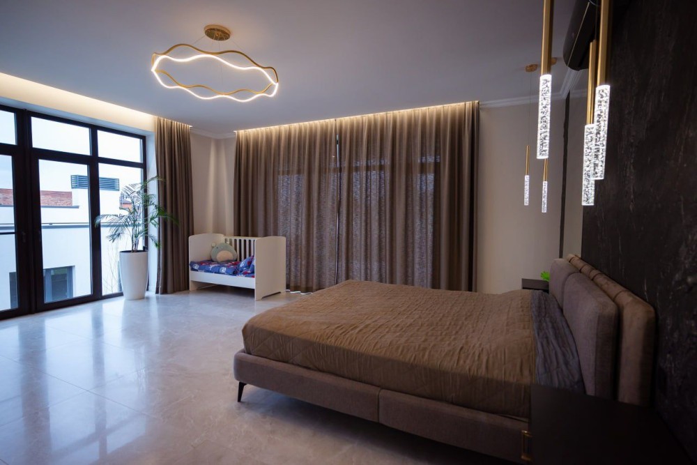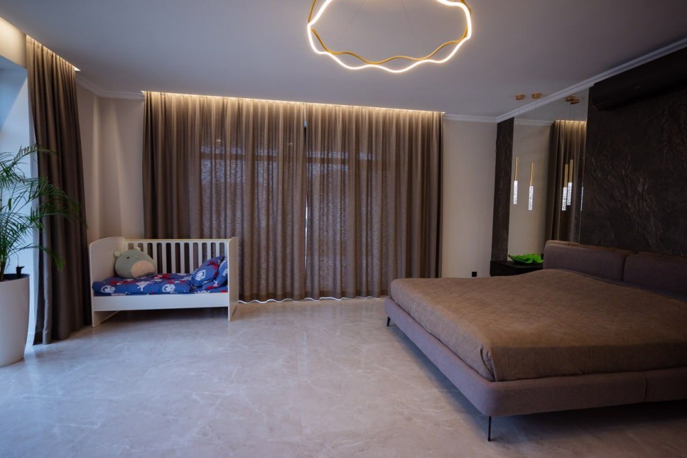 • 4 кімнати (дві — з гардеробними та виходами на терасу)