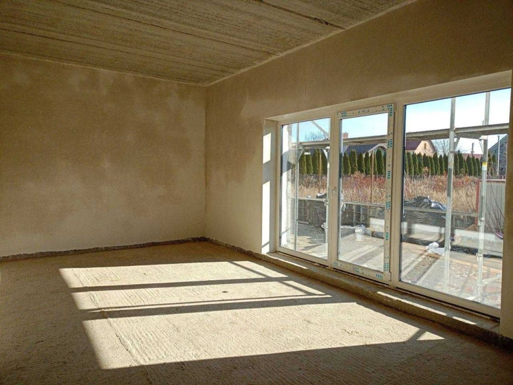 5-камерні вікна VEKA, усередині виконана гіпсова штукатурка, заведене світло 8 кВт, газ, індивідуальне водопостачання та водовідведення.