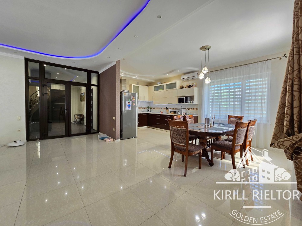Общая площадь дома с гаражом S = 300 м² и расположен на приватизированном участке S = 13 соток
