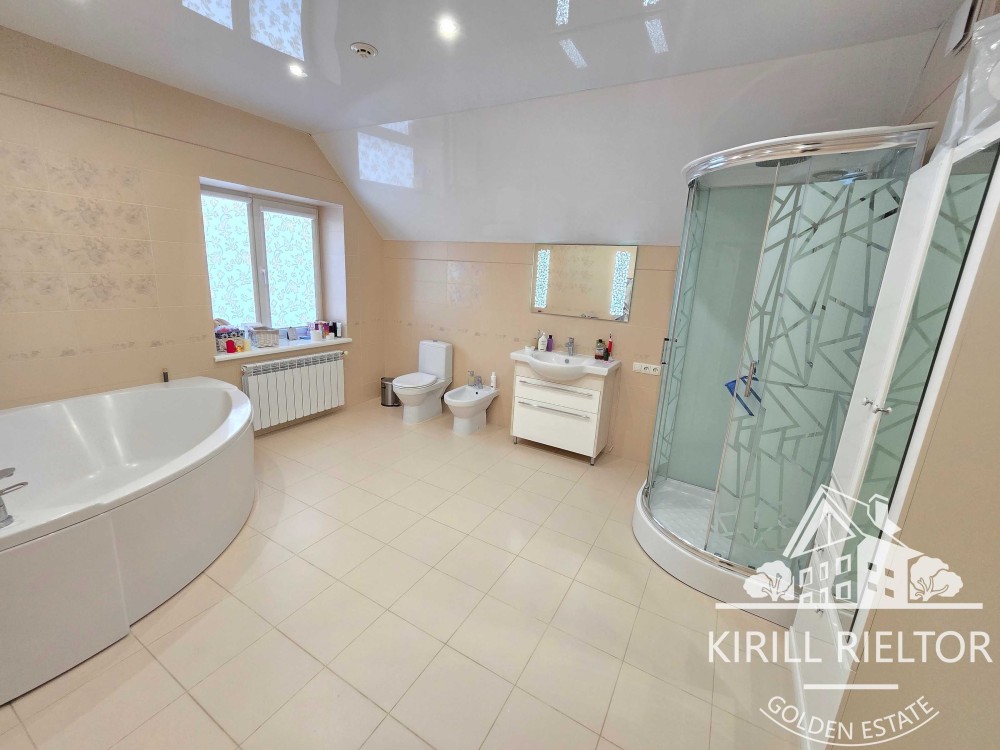 Броварской р.н.с.Рожны.Дом 2020г.Площадь жилая 210м2.Общая 300.Стены керамоблок.залиты межэтажные монолитные участок 36сот.Электричество15кВт.Интернет.Рядом лес.Маркет.базар.автобусная остановка.До города 20км