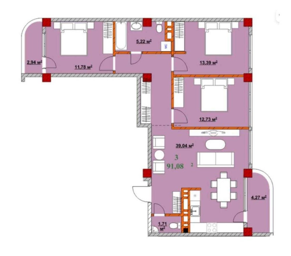 • Трикімнатна
