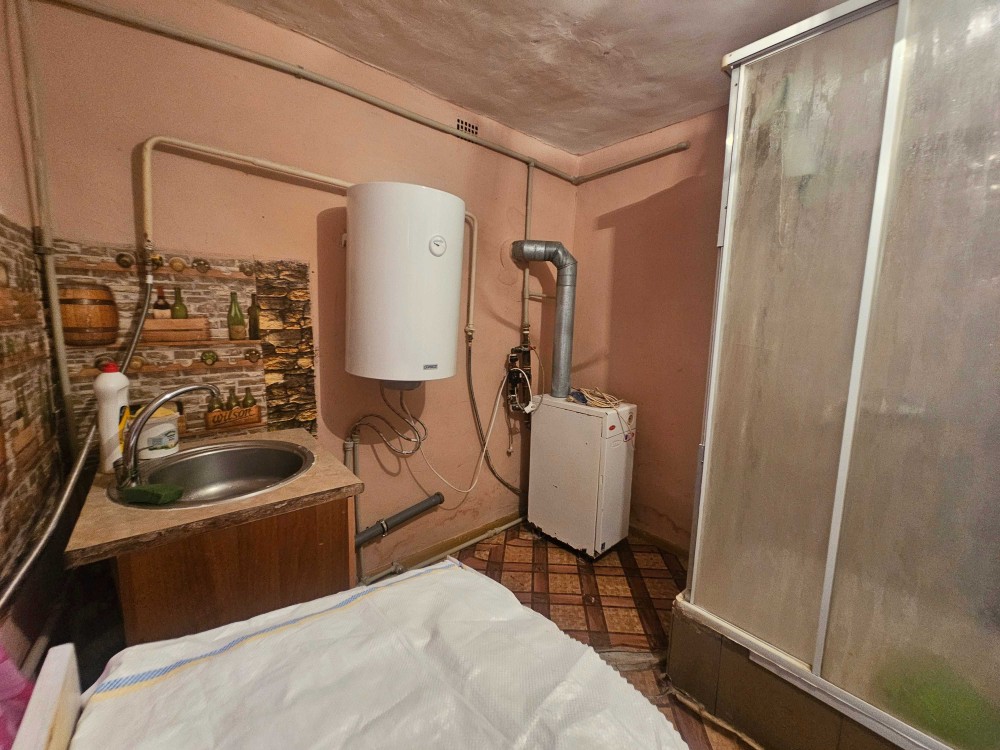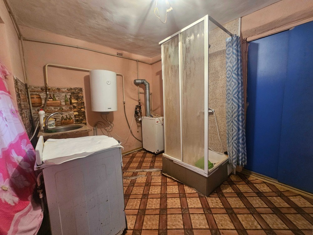Установлен напольный котёл, бойлер, душевая кабина расположена на кухне. Окна частично заменены на металлопластиковые, установлены две батареи отопительного образца, есть газовый счётчик. Удобства на улице.