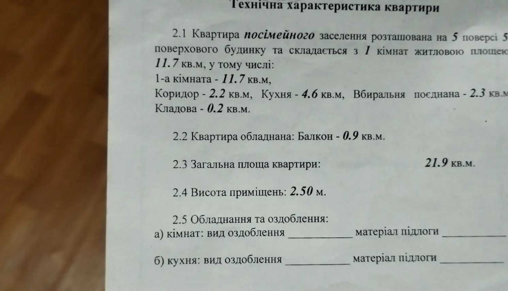 • Загальна площа 22 м2