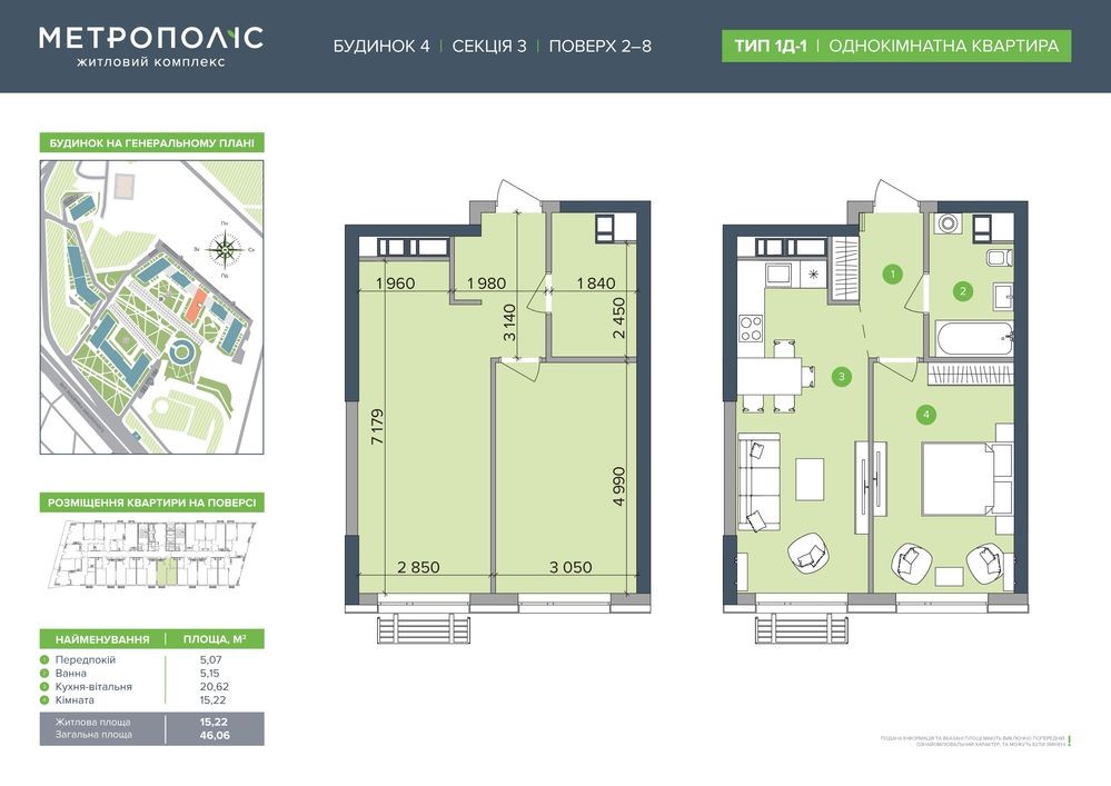 • Загальна площа 46.06 м2