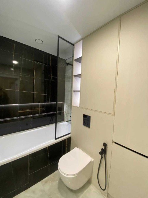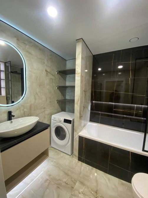 - в ванній кімнаті вмонтована ванна , є пральна машинка