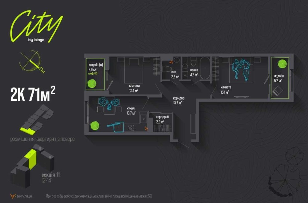 • Загальна площа 71 м2