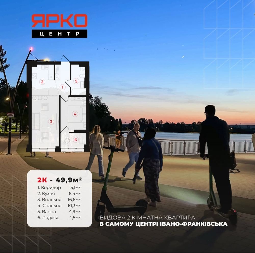 Продаю 2к до озера 5хв. в ЖК Ярко Центр