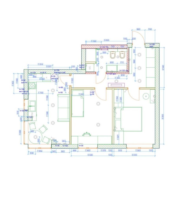 • повністю готова розводка сантехніки;