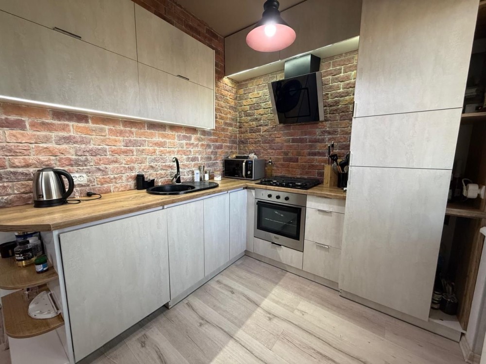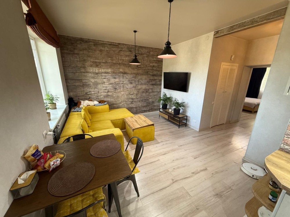 В квартире сделан капитальный ремонт с перепланировкой в кухню студию и отдельную комнату.
