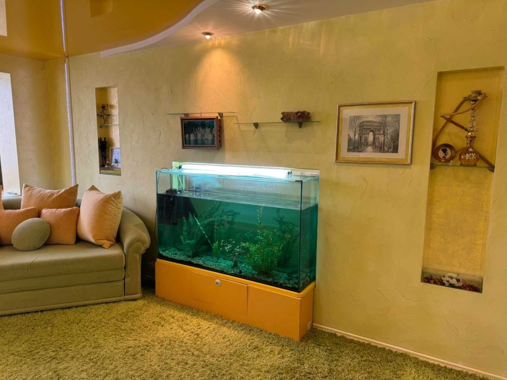 В квартирі виконано дизайнерський ремонт з частковим переплануванням, встановлено лічильники води, газу, електроенергії, замінено столярку, труби і сантехніку, встановлено кондиціонер, стаціонарний акваріум. Квартира повністю мебльована, меблі та техніка залишаються покупцю квартири.