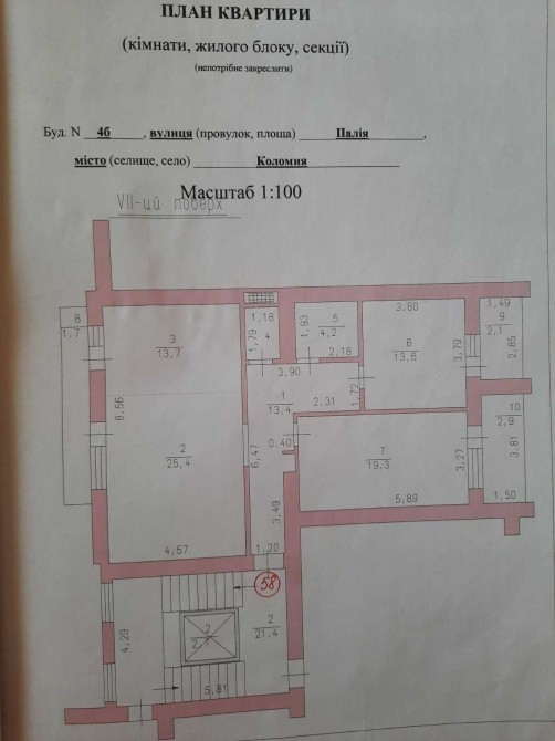 Продаю 3-кімнатну квартиру на 7-му поверсі в 9-ти поверховому жилому цегляному будинку на вул.Палія, 4 Б, в м.Коломия.