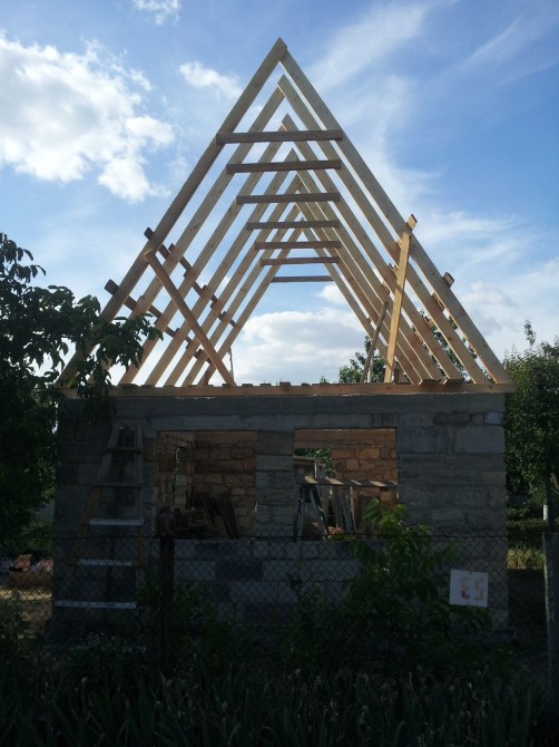Стоит Дом 5х6 , накрытая крыша метало черепица , метало пластиковые окна,есть пристройка к дому под  ванную комнату ,  поштукатуренная внутри дома .Всё остальное по телефону