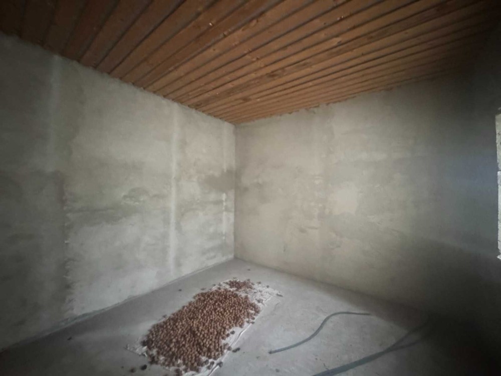 В доме стены выровнены и обработаны цементной стяжкой. Крыша утеплена. Газ, канализация к дому подведёны. Имеется собственная скважина, бассейн во дворе и по дороге проложен центральный водопровод.