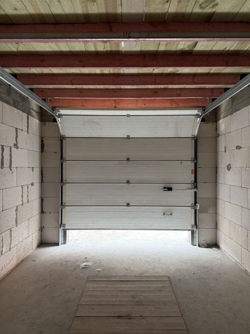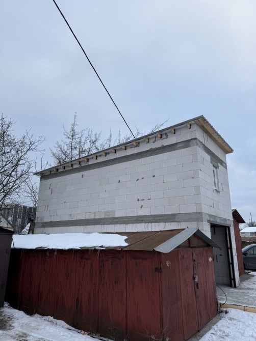 Перекриття між 1-м і 2-м поверхом дерев’яні балки 15см на 5см, такі ж дерев’яні балки і на покрівлі цього гаража. З можливістю утеплити перекриття, покрівлю і мати комфортну температуру в гаражі.