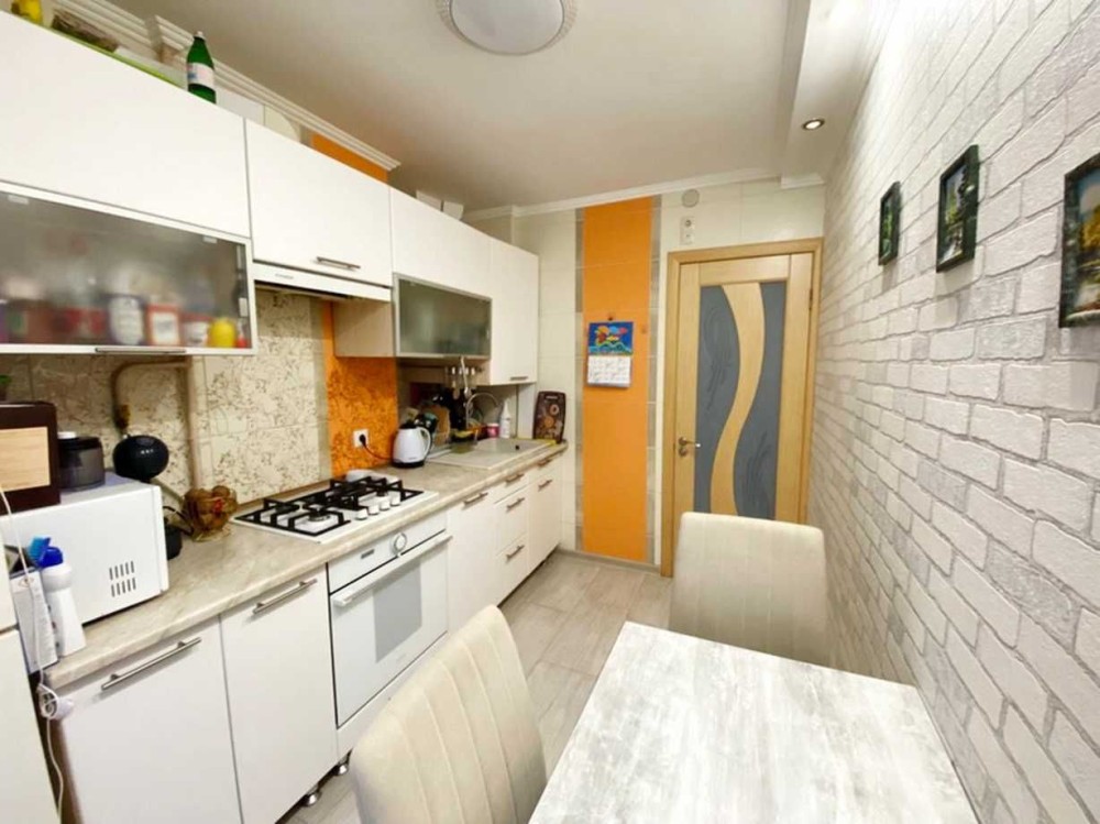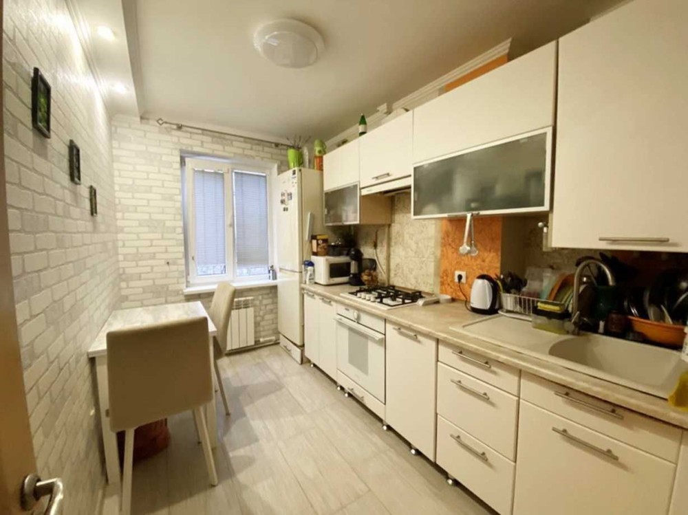 Вікна та лоджія металопластикові, замінена сантехніка та електрика, новий бойлер та кондиціонер, облаштована лічильниками на воду та світло. На кухні, коридорі, санвузлу на полу плитка, в кімнатах – ламінат, нові вхідні двері.