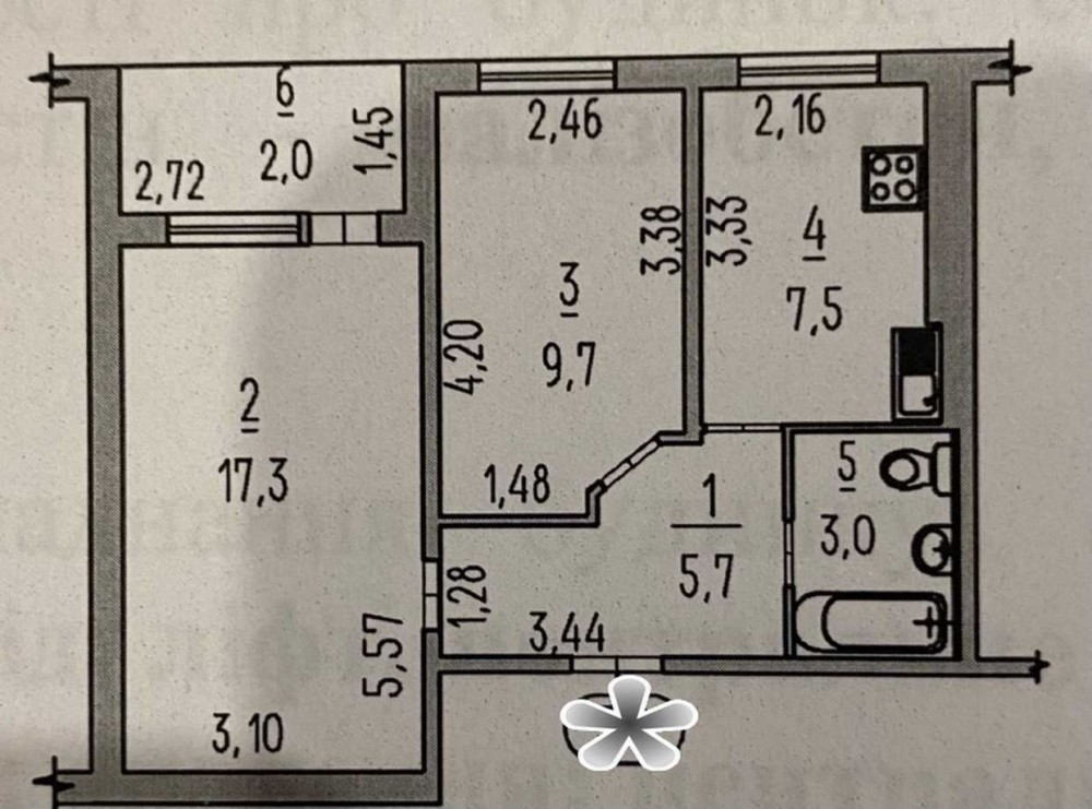 • Площа кухні 7.5 м2