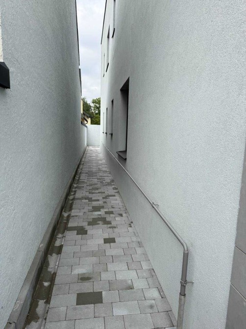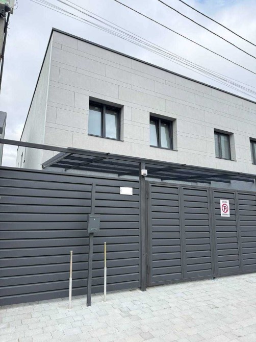 В'їзна брама з автоматикою. 2 паркомісця з накриттям. Виведена зарядка для електрокара. Вхідні алюмінієві двері. Домофон. Плоский дах - пвх мембрана.