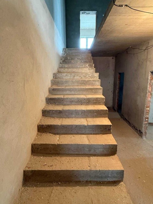 Матеріал стін-цегла. Залізобетонні перекриття. Монолітні сходи. Попереду вентильований фасад - 15 см мінеральна вата. Збоку та позаду утеплення пінопласт 15 см.