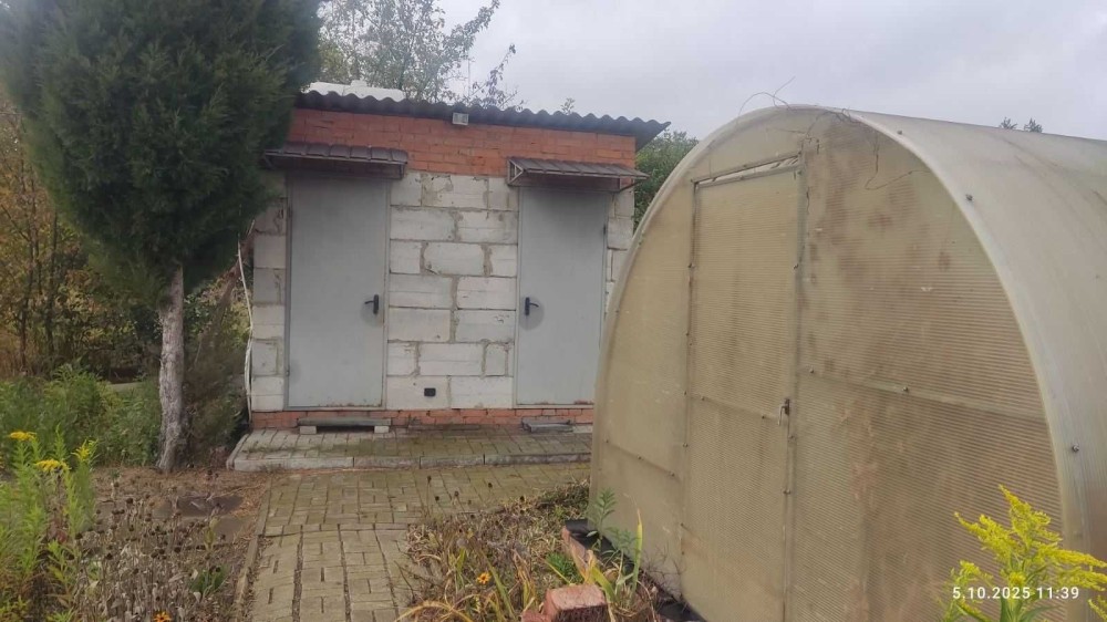 Є сарай, літній душ, туалет, теплиця, свердловина, місце для стоянки двох авто.