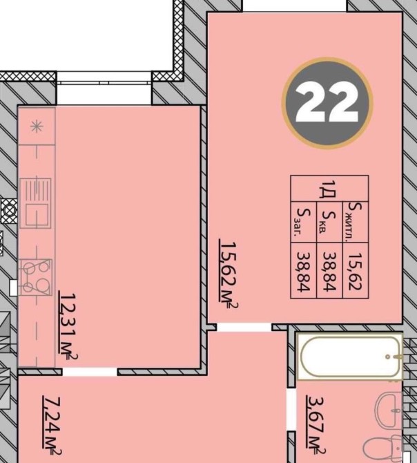• Загальна площа 40 м2