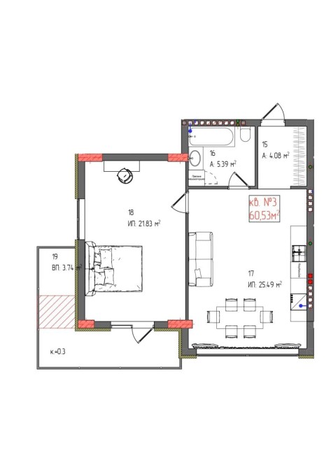 • Загальна площа 56 м2