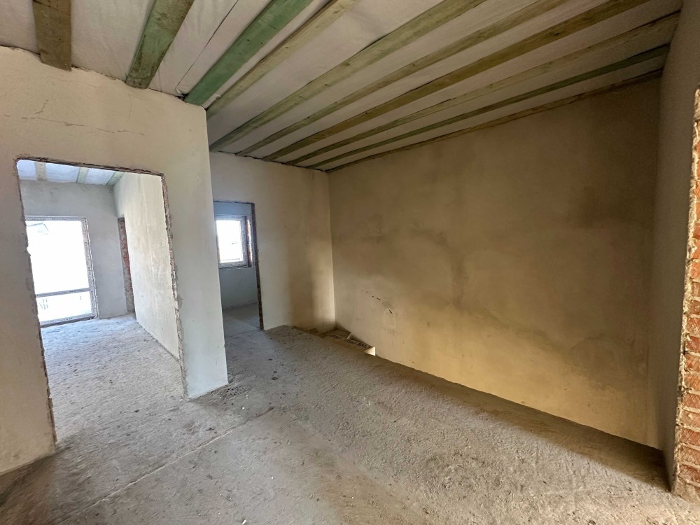 - Стіни: зовнішні — 3 цегли М-125 + утеплення пінополістиролом 100 мм