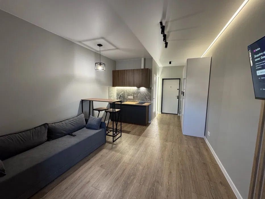 Квартира продається з якісним ремонтом та побутовою технікою. Має електро опалення, тепла підлога у ванній кімнаті, гарне світло, броньовані двері, холодильник, смарт ТВ, кондиціонер, велике дзеркало з підсвіткою, пуф, розкладний диван, виведений кабель під роутер.