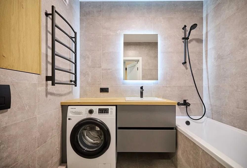 Вбудований холодильник Whirlpool, посудомиюча машина та варочна поверхня BOSCH, пральна машина Samsung.