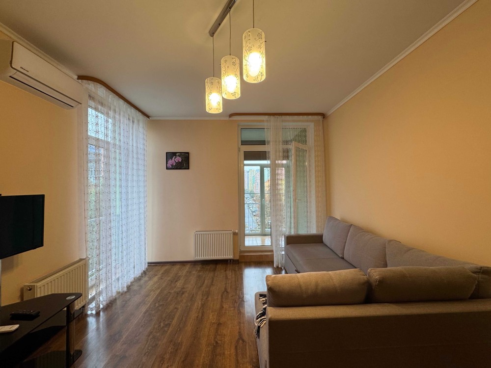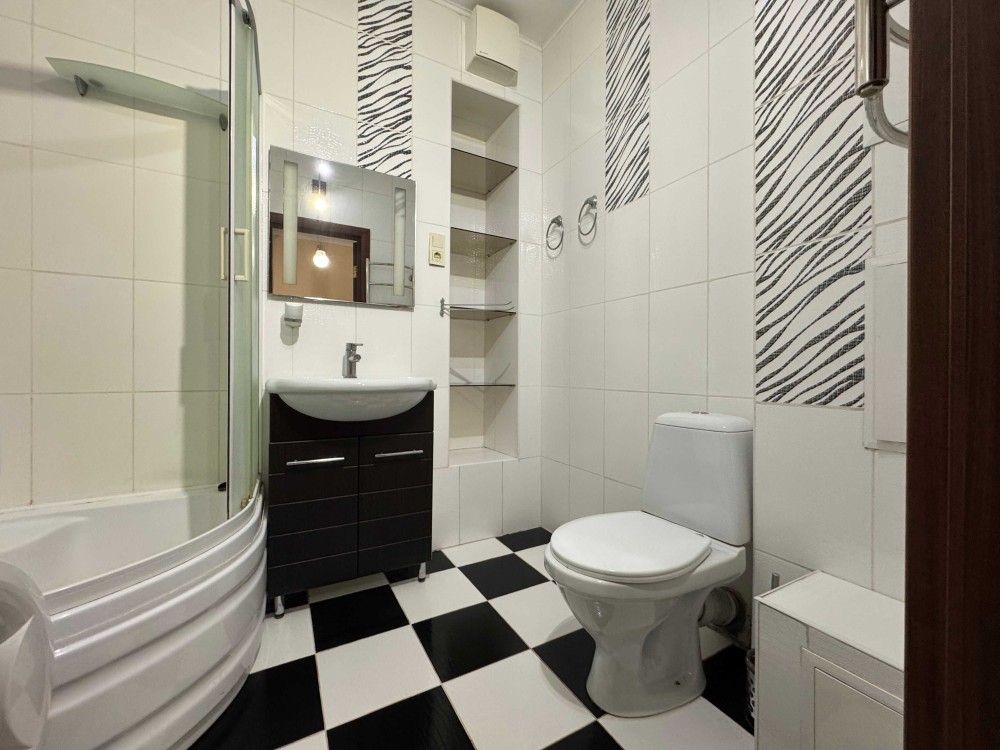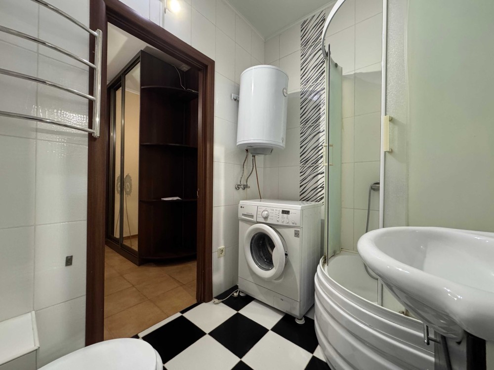 В квартирі є вбудована шафа для одягу. Всі необхідні меблі і побутова техніка (кондиціонер, пральна машина, бойлер, холодильник, телевізор).
