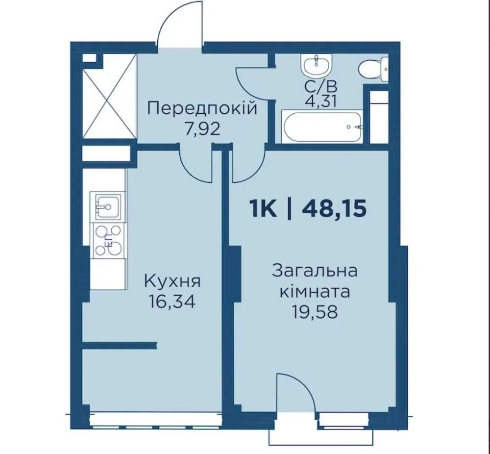• Загальна площа 48.15 м2