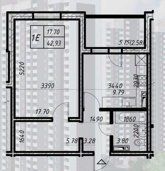 • Загальна площа 42.93 м2
