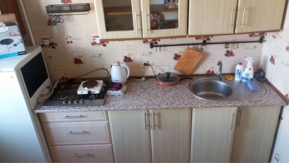 пластиковые окна, бойлер, металлическая входная дверь (красный декор), 15минут пешком до центра,есть рядом супермаркет,остановки с регулярным автобусами в разные стороны города, тихий район,рядом школа .