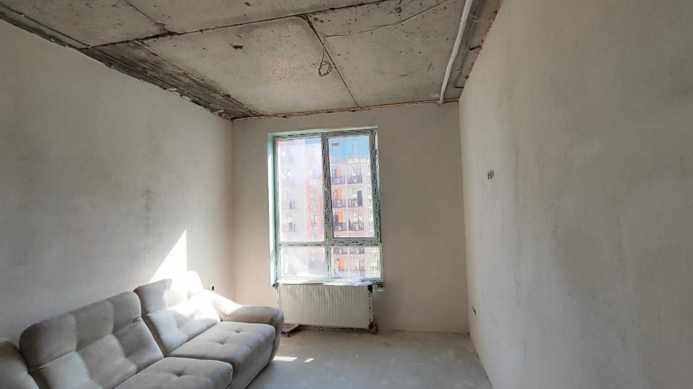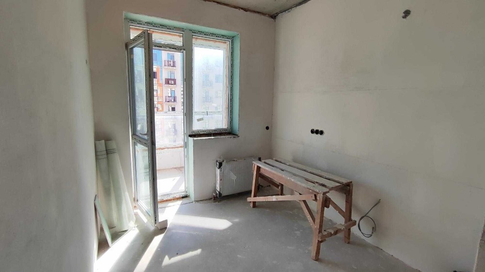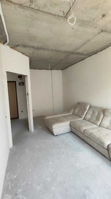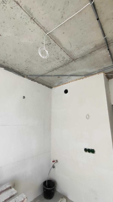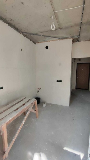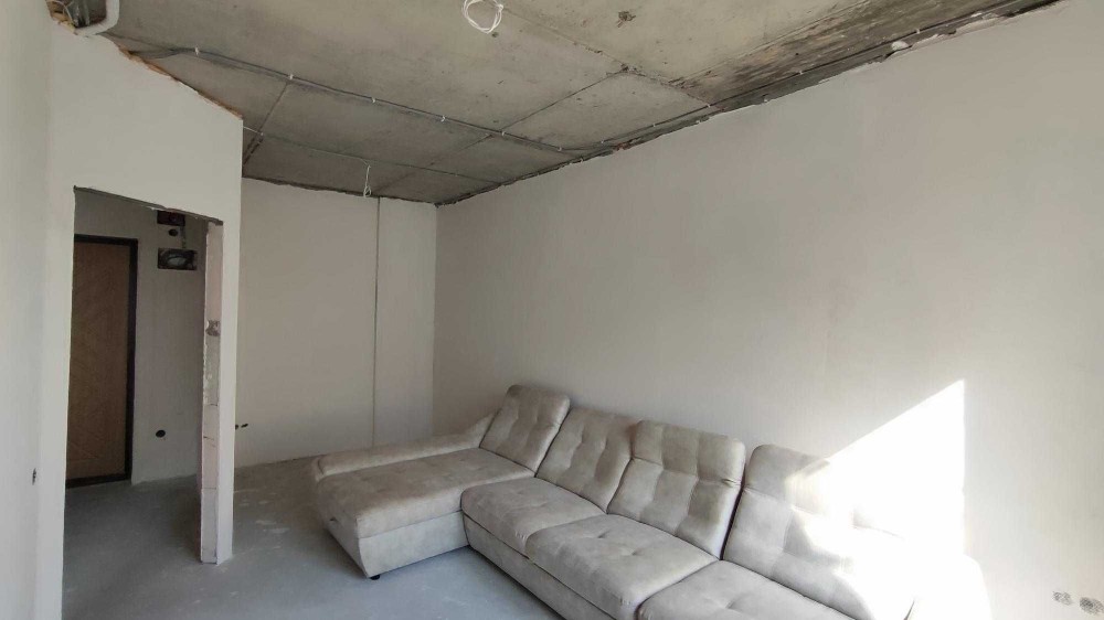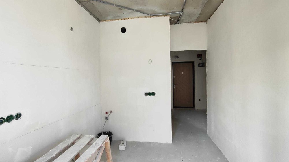 Общая площадь квартиры составляет 35 квадратных метров. Здесь уже выполнен частичный ремонт: проведена электрика и сантехника, стены выровнены и ошпаклёваны.