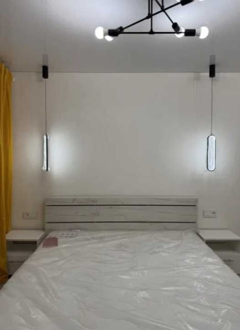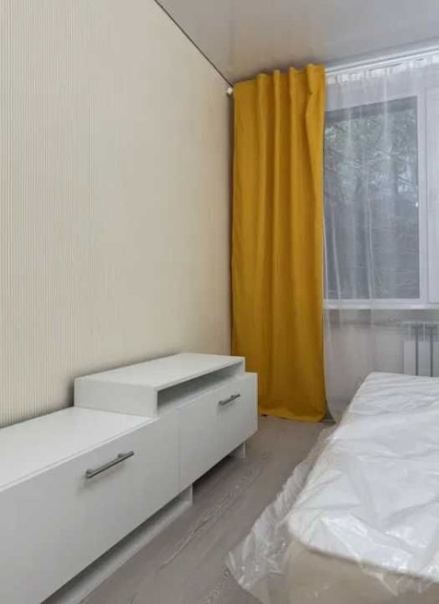 В спальне установлена новая двуспальная кровать размером 200×160 см с новым двусторонним матрасом. Прикроватные тумбы, TV-тумба и вся остальная мебель входят в стоимость квартиры. Смонтированы современные бра и розетки.