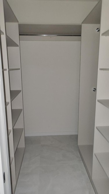 Отдельная гардеробная с установленными шкафами и полками позволяет удобно организовать хранение вещей и поддерживать порядок.