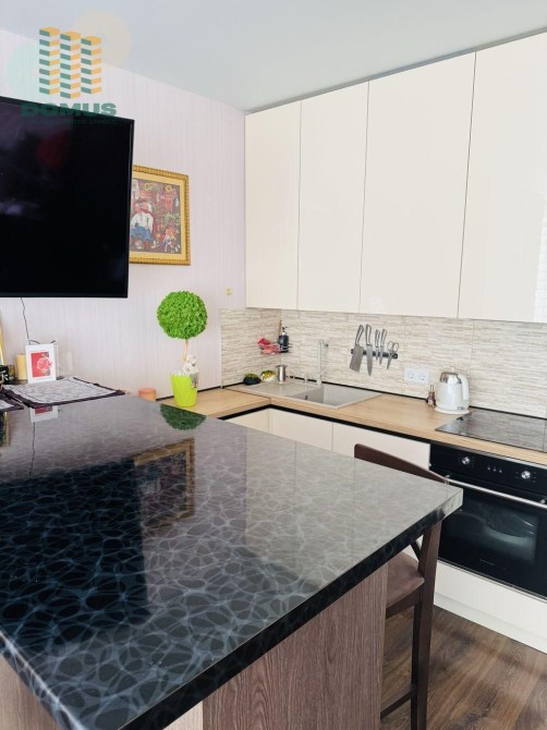 Квартира укомплектована качественной мебелью и техникой. Новая кухня с доводчиками blum. Шкаф-кровать с подъемным механизмом. Стол-остров, который служит как столом, так и вместительным шкафом. Большой раскладной угловой диван. Шкаф основной и шкаф в коридоре, жалюзи «день-ночь», тепловой счетчик на отопление (экономия на отоплении в разы).