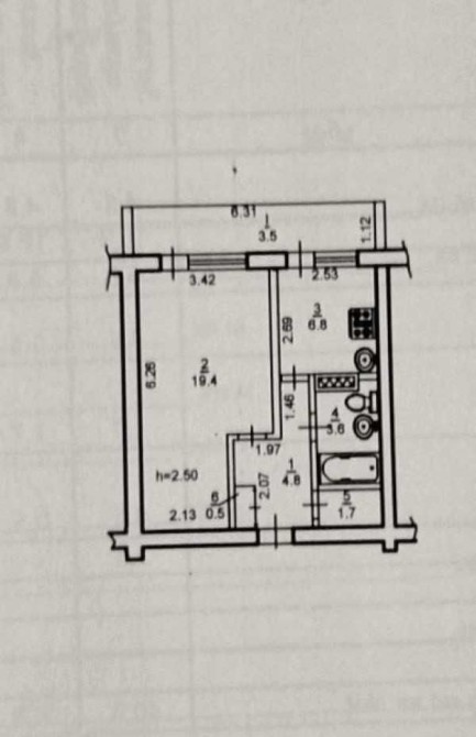 2/12, площадь 40/19/7 с нишей.