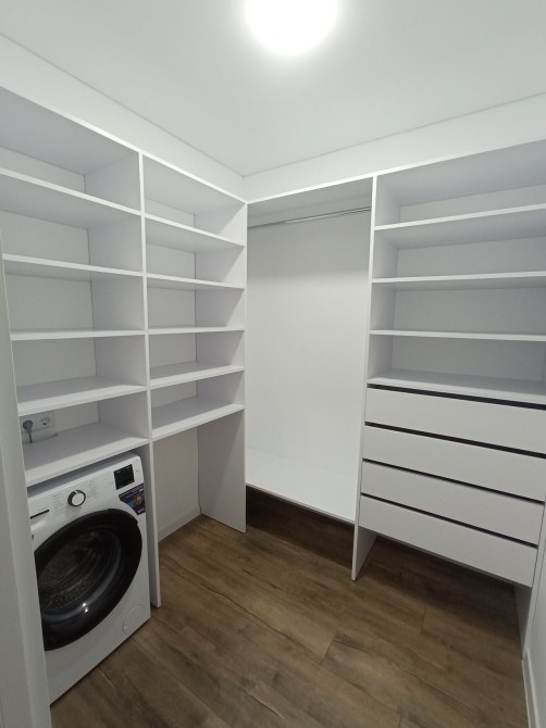 Пральна машина підключена в гардеробній, там же є примусова витяжка.